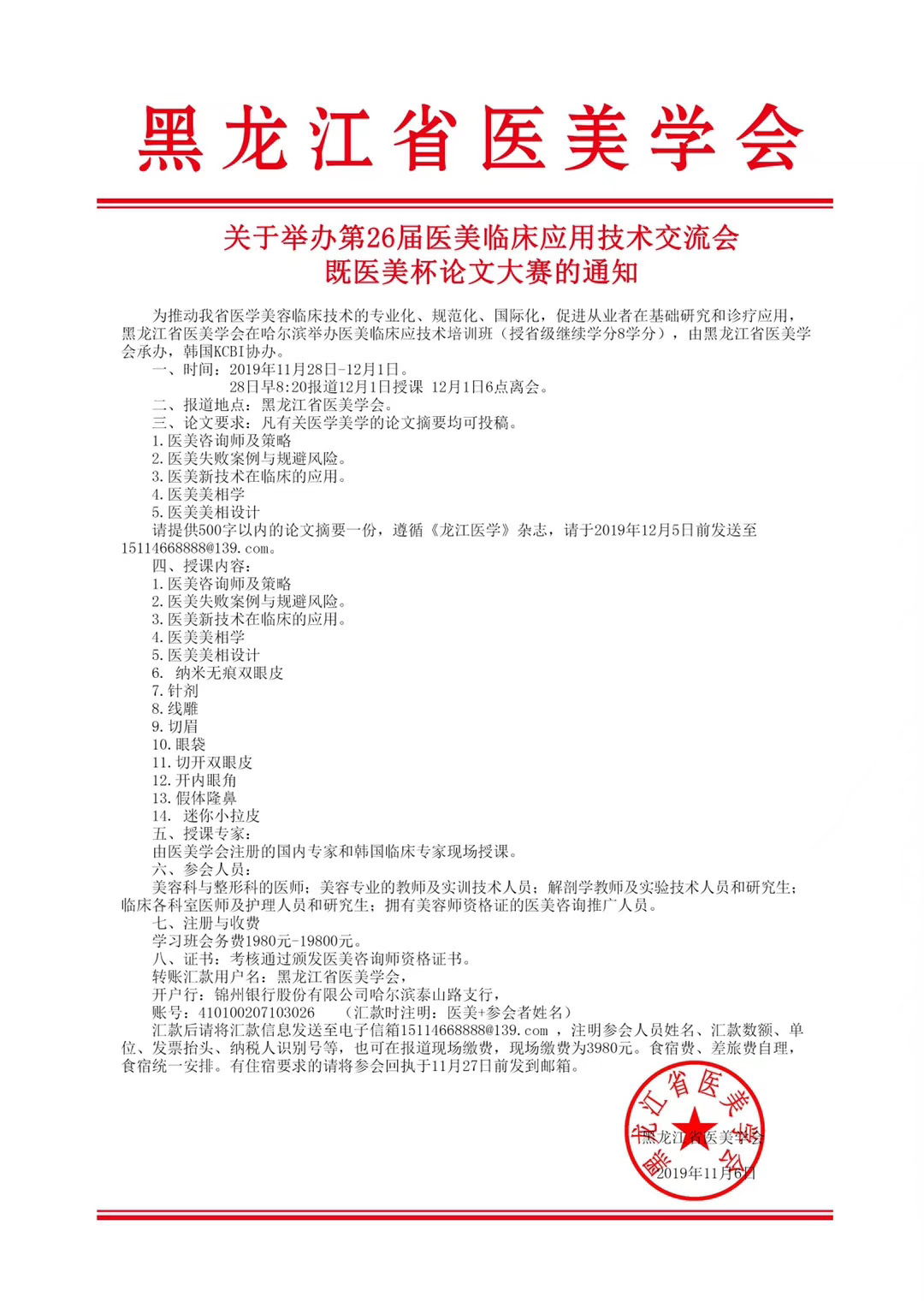 关于举办第26届医美临床应用技术交流会既医美杯论文大赛的通知